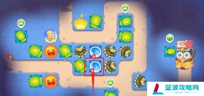 5、第五、六波上方加一瓶子塔,左侧加一鱼雷升满级,左侧再加三瓶子塔,中间加一蓝色塔,道具全清。