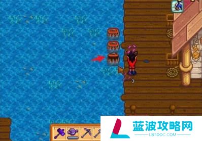 2、将鱼饵拿在手上,右击下已经安置的蟹笼,你会发现饵的数量少了一个。