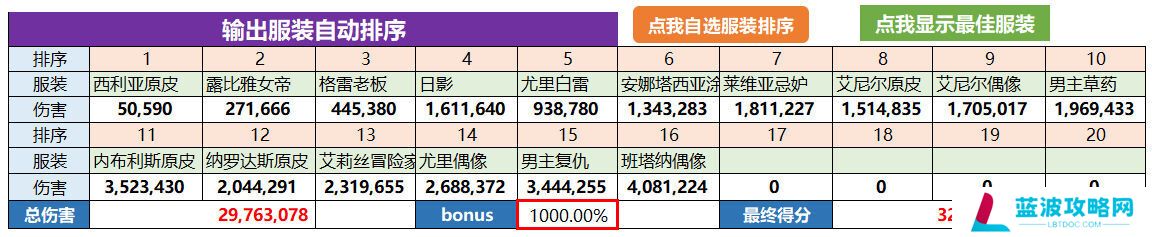 输入自己服装的倍率,自动显示输出前20的服装。