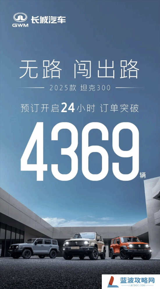 据国内媒体报道,2025款坦克300于3月1日开启预订,定金为3000元,在开启预订后的24小时内订单量突破4369辆。