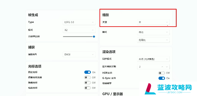 通过缩放类型,将游戏画面进行锐化。