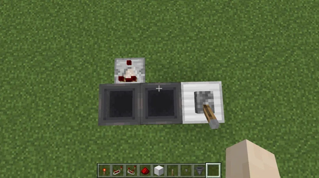 在任意1个的漏斗边上放置红石比较器,并在其中1个漏斗中放置1个物品。