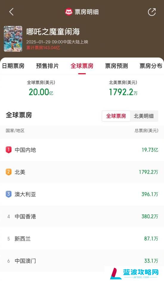 详细票房方面,中国内地累计票房达19.73亿美元,北美1792万美元,澳大利亚396万美元,中国香港380万美元。
