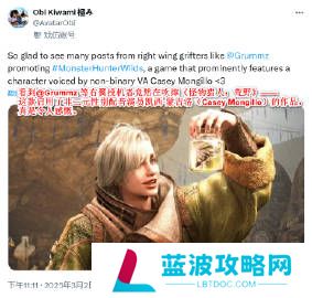国外网友发文嘲讽前《魔兽世界》制作人 Grummz,明明《怪物猎人:荒野》艾力克声优 Casey Mongillo 是一名非二元性别者,但是其还不遗余力地宣传这款游戏,并在文中@ 了其本人。