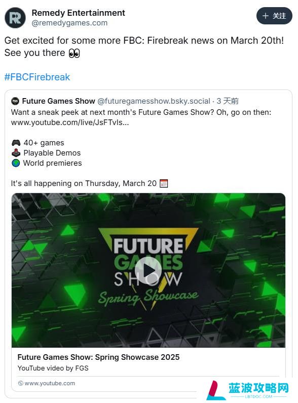 据Bluesky社交媒体平台的最新消息,Remedy Entertainment旗下的《控制》系列新作《FBC:Firebreak》已确定参展3月20日举办的春季未来游戏展,该展览隶属于游戏开发者大会(GDC)。届时,游戏将对外公布全新资讯,可能涵盖发售日期等重要信息。