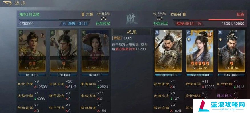 战法选择:曹操:折冲御侮+青囊急救/避其锐气女儿:勇冠三军+缮甲厉兵邓艾:百战不殆+披坚执锐阵型:锥形阵。