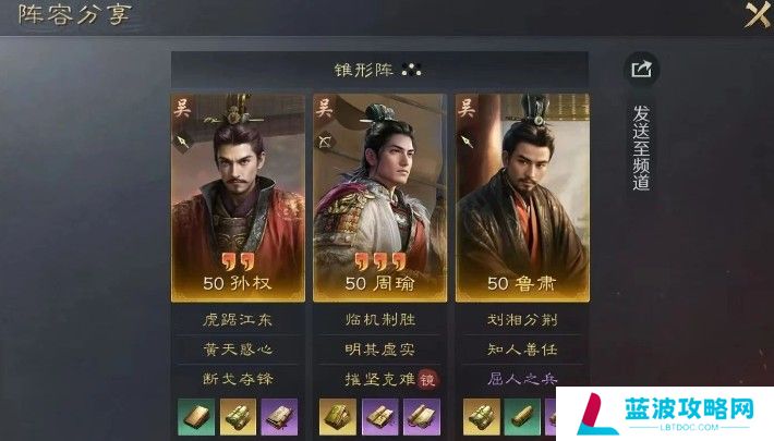 周瑜:明其虚实+镜·摧坚克难鲁肃:知人善任+屈人之兵阵型:锥形阵。