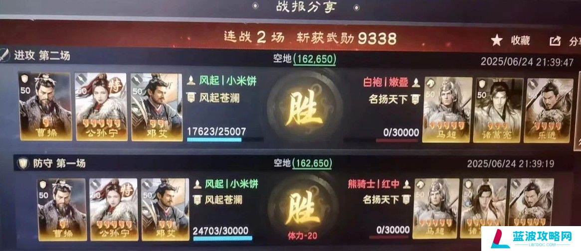 装备:曹操、邓艾智统(万象/君临),女儿武统(无畏)。