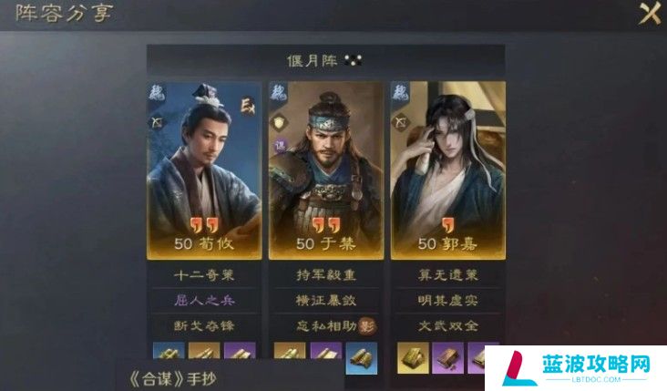 评价:这一队于禁要带五谋臣信物,无视清醒。