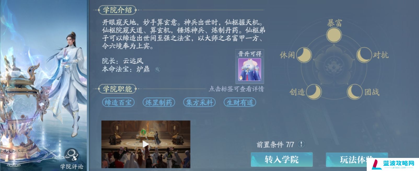 游戏中有三个学院:仙羽院、仙枢院和仙修院,分别负责时装设计、法宝锻造和战斗训练。在此次测试中,玩家可以体验到三线融和的玩法,能够同时参与这三个不同学院的活动,更快速地发现自己喜欢和擅长的领域。
