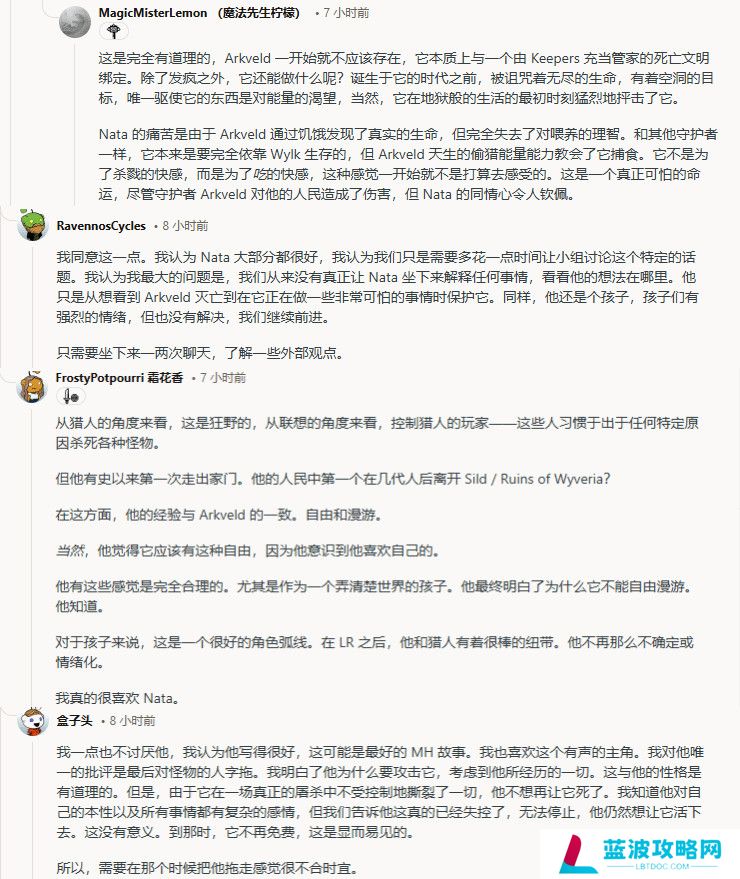 尽管网络上对纳塔的批评声此起彼伏,但在外国论坛上,也有一部分玩家为纳塔辩护。他们认为,纳塔只是一个珍视生命的纯真孩子,锁刃龙的生命同样宝贵,而且锁刃龙在某种程度上也是受害者。还有人指出,随着故事的深入,纳塔在解锁更高级别的任务后发生了很大的变化,他在拜猎人为师后,成长了许多。更有甚者,认为纳塔的剧情是《怪物猎人》系列中最引人入胜的部分。