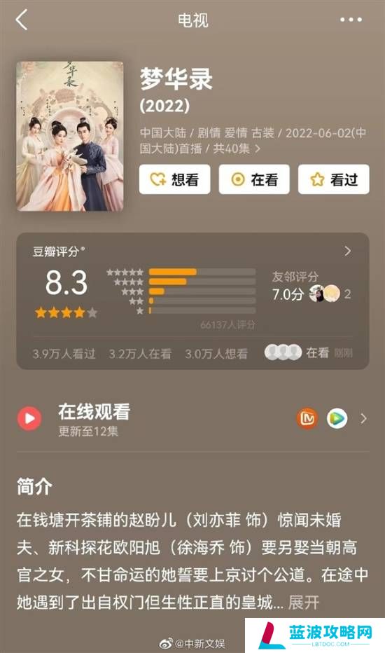 近日,有网友发帖称,由刘亦菲、陈晓、柳岩等主演的古装励志大剧《梦华录》,被编入上海交通大学出版的影视系列教材,作为网络剧项目研究案例。