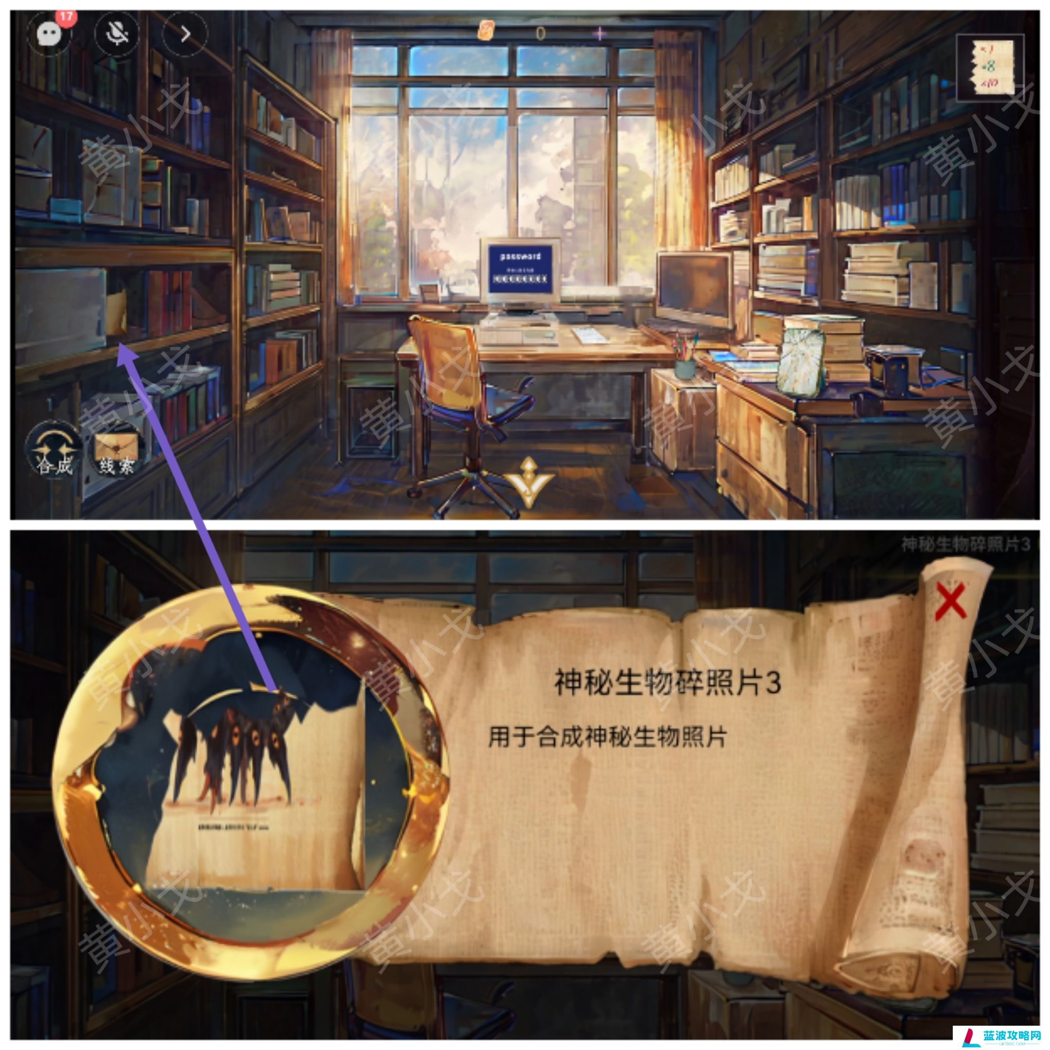 7.(书籍室)点击获取左侧书架上的【神秘生物碎照片3】