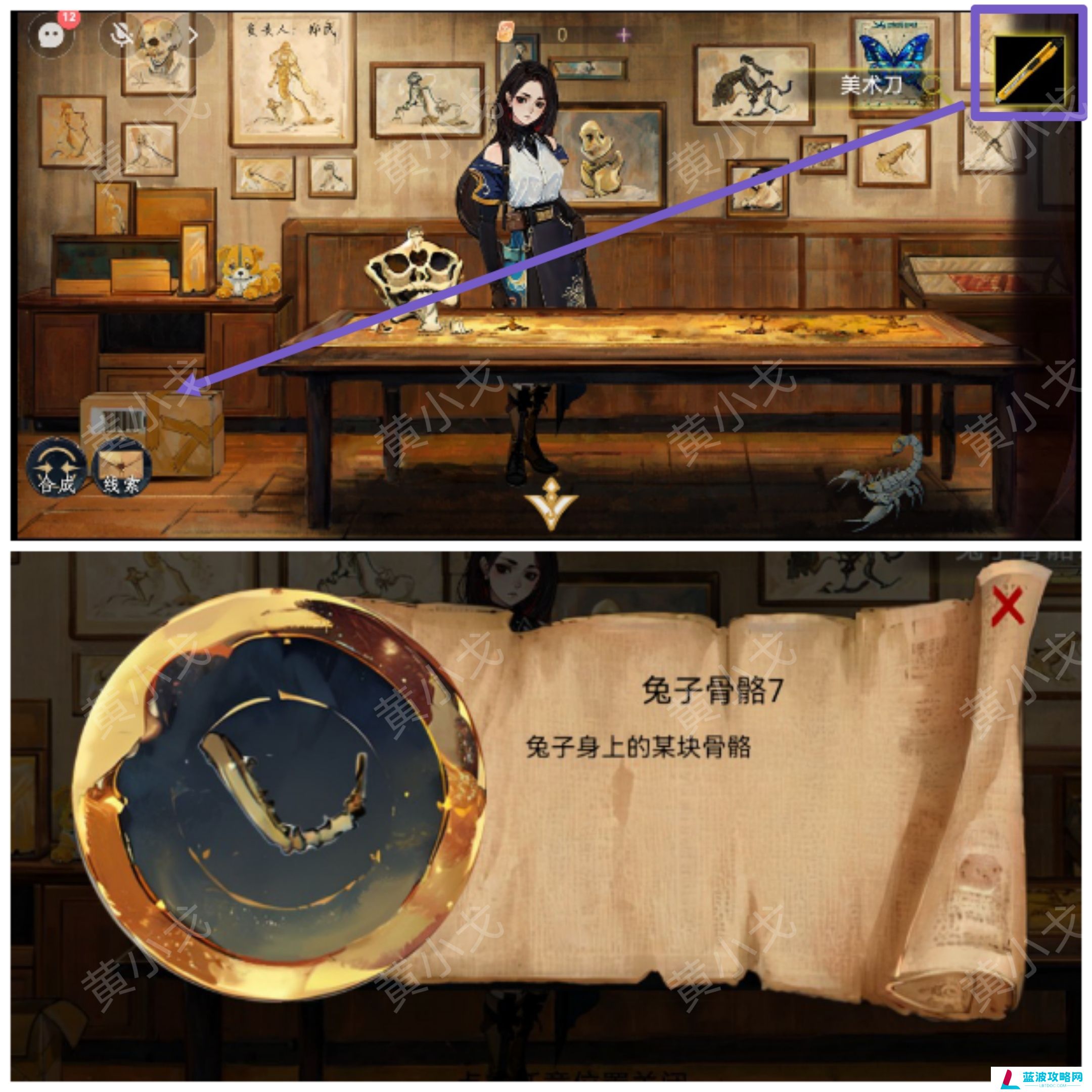 3.(标本室)用【美工刀】打开包裹,获得6块【兔子骨骼】和3块【小狗骨骼】