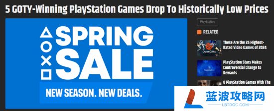 PlayStation商城“春季优惠”现已开启,外媒gamerant盘点了数款正在以史低价格出售的游戏,其中包含多款年度最佳游戏。感兴趣的朋友不要错过哦。